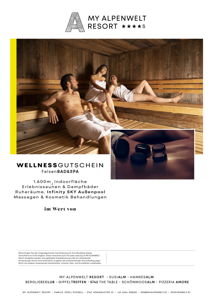 Für dich von mir, von Herzen!<br>Nimm dir Zeit für die schönen Momente des Lebens, denn sie sind kostbar, wie ein Schatz. Ich wünsche dir eine genussvolle Wellness-Auszeit & einzigartige Bergliebe moments im My Alpenwelt Resort Königsleiten.