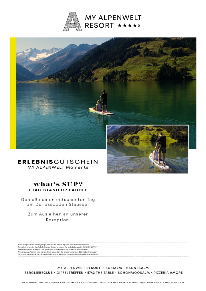 • Einzulösen ist der Gutschein direkt an unserer My Alpenwelt Rezeption auf Anfrage & Verfügbarkeit.