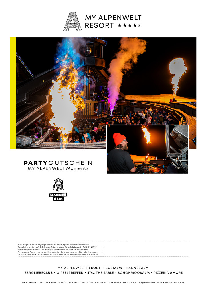 #1 Après Ski Bar der Zillertal Arena! Direkt von der Piste in die Party! In der HANNES ALM erwartet euch Apres- Ski der Extraklasse mit pulsierenden Beats, angesagten DJs und einzigartiger Stimmung - jeden Tag bis spät in die Nacht. Die Sonnenterrasse lädt mit ausreichend Platz zum Verweilen ein, während die Musik für perfekte Stimmung am Berg sorgt.Erlebt das unvergessliche Highlight , wenn sich das "Cabrio Alm" öffnet und ihr unter dem funkelnden Sternenhimmel abfeiern könnt! Ob internationale Top -DJs, mitreisenden Live-Bands oder unser legendärer "Home of Angels" Vibe - hier ist immer was los. Macht euren Ski-Tag perfekt und lasst die HANNES ALM zur Party-Location eurer Träume werden. Hier endet der Tag nicht, hier beginnt die Nacht!